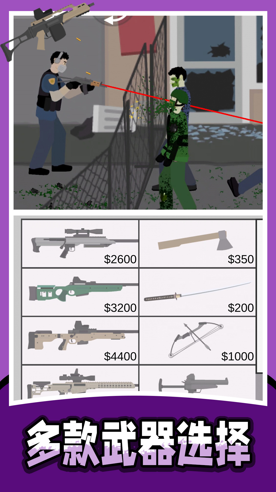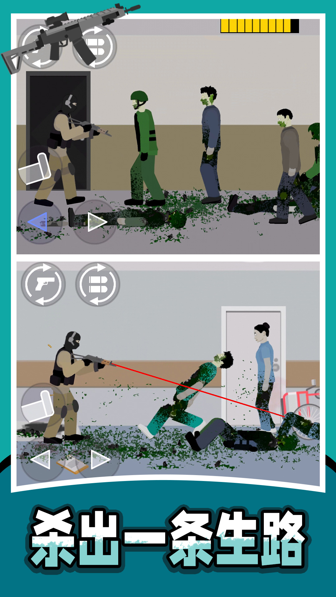 1、以消灭僵尸为主题的像素射击游戏,玩家需要使用各种武器来完成射击挑战。