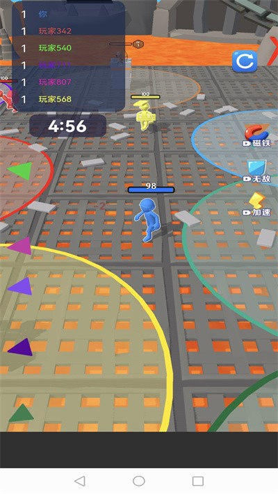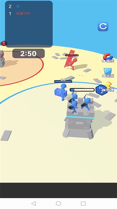 1.休闲的对战比拼,控制自己的角色前往不同的区域中收集砖块,让你的防御塔获得更加强大的力量。