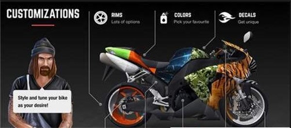 2、赢得每一次的比赛,挑战整体来说还是很过瘾的,全新模式等你开启炫酷的摩托车,