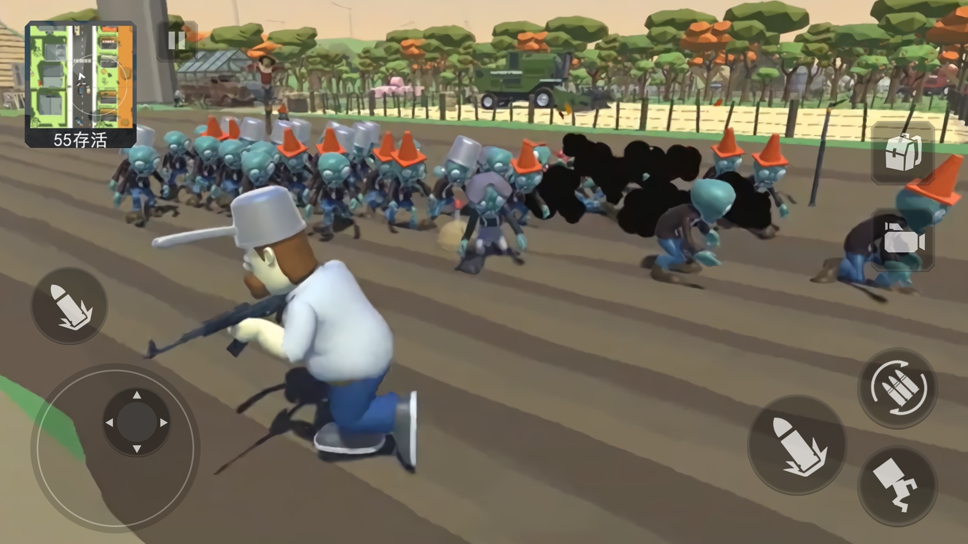 3、你的目标就是消灭所有僵尸保护自己的农场,每场战斗都非常激烈,处理各种危险事件。