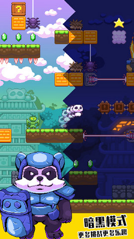 超能熊猫侠游戏是一款非常经典的动作闯关类游戏,玩家操控的角色能否成功的挑战任务成功熊猫侠就看玩家的闯关实力。极具趣味的闯关内容为你带来重塑经典的诸多挑战,各种闯关任务都是非常不错的精彩挑战。更有自制关卡模式为你带来别样的闯关乐趣,游戏中的暗黑模式玩法拥有更加刺激的挑战等你来!