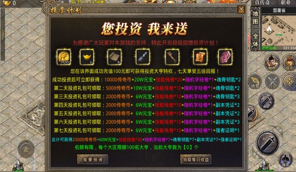 1、游戏中具有三个经典的传奇职业,玩家可以自由的选择参加任务,还可以在这里抢夺宝物;