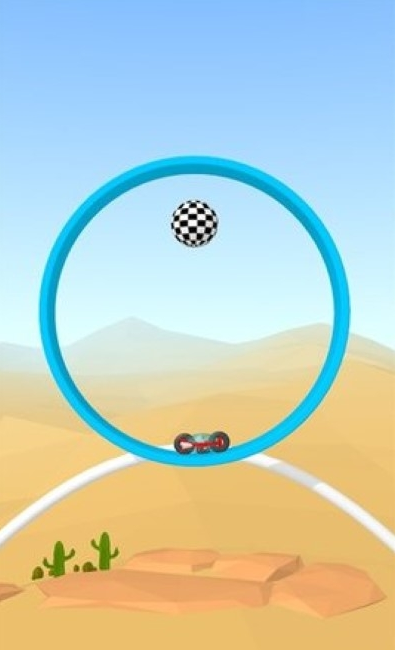 3、一个个圆环的赛道需要玩家灵活快速的操作着自己的赛车在上面跳跃和前进。