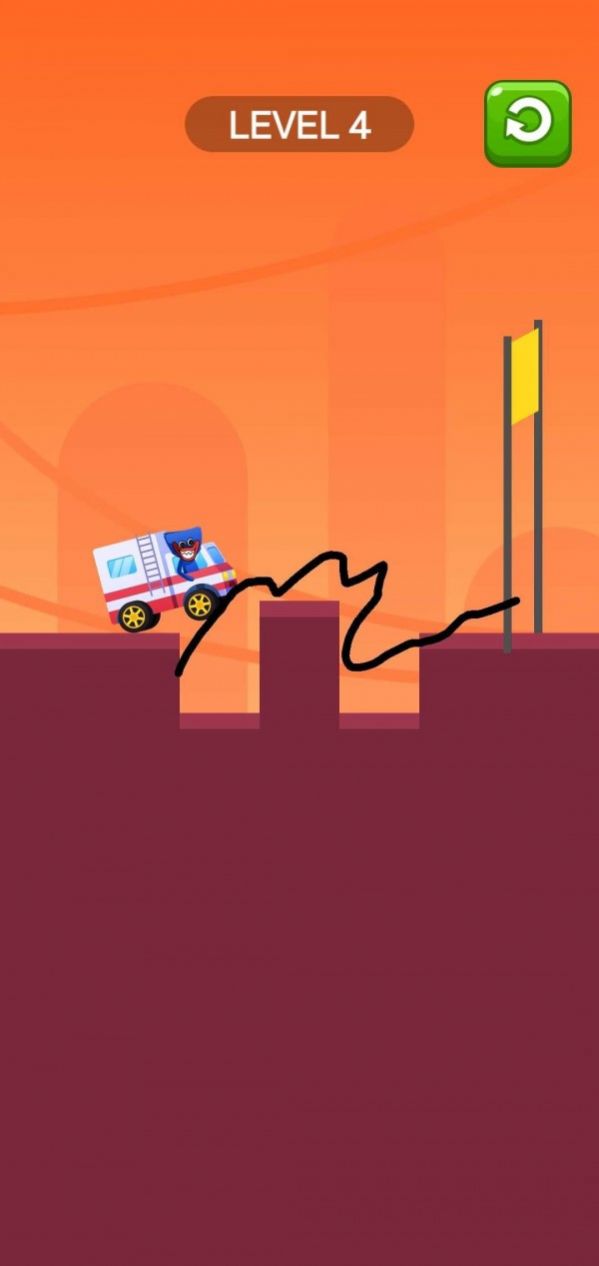 3、成功完成任务并获胜,根据游戏提示画出不同的线。 只有画出一条更符合要求的线,你的车才会非常顺畅地前进。