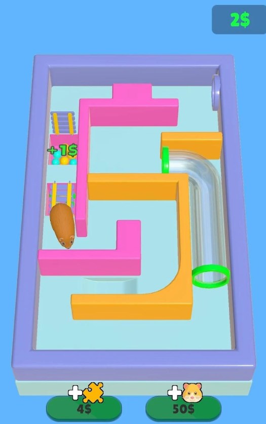 2.在仓鼠寻找出口的过程中,将会收集到大量的金币,为你的迷宫进行升级,变得更加复杂。