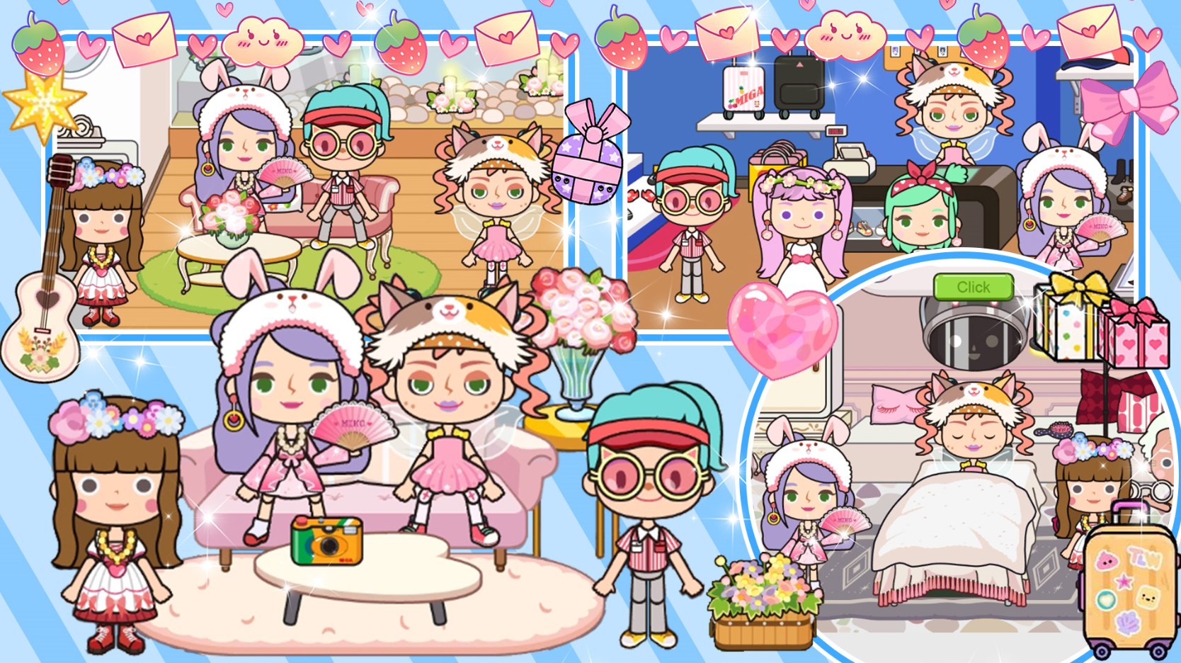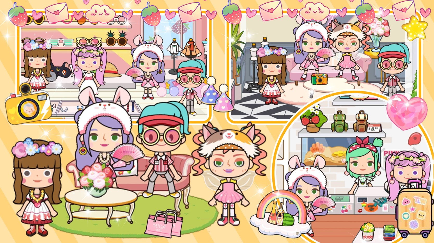1、在米加梦幻乐园模拟米加夏威夷小镇缤纷梦幻生活,穿上新款的潮流服装。