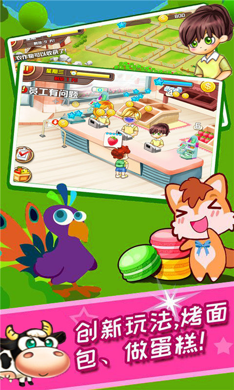 2、你可以在游戏中种植蔬菜,饲养宠物,建造蛋糕店制作出可口美味的蛋糕。