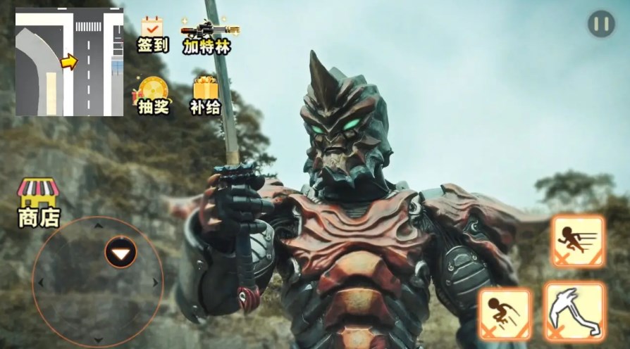 3、游戏中你需要扮演战士伽古拉,击败来袭的巨型怪兽和机甲。