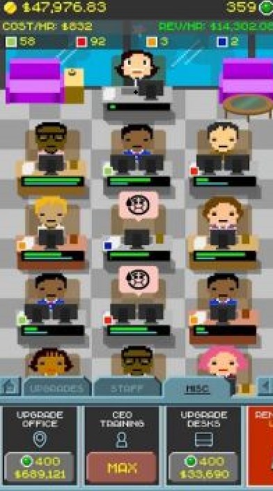 非常好玩又有意思的趣味休闲公司模拟经营游戏,在游戏中,玩家将需要去成为一个创业者来进行公司的经营,游戏里面玩家要去根据不同的项目来进行选择,帮助自己的公司越做越大,游戏的体验十分有趣。