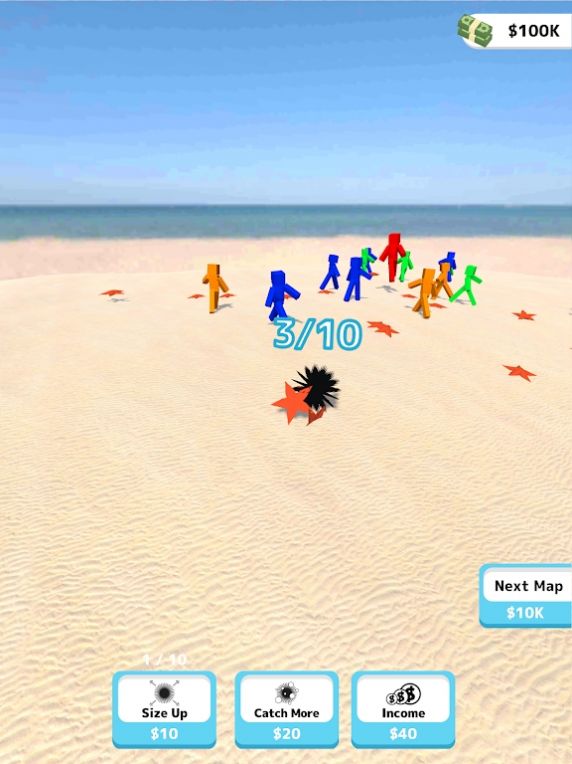 1.操作起来并不会很难,操控你的角色不断的移动去海滩上收集更多数量的海胆吧;