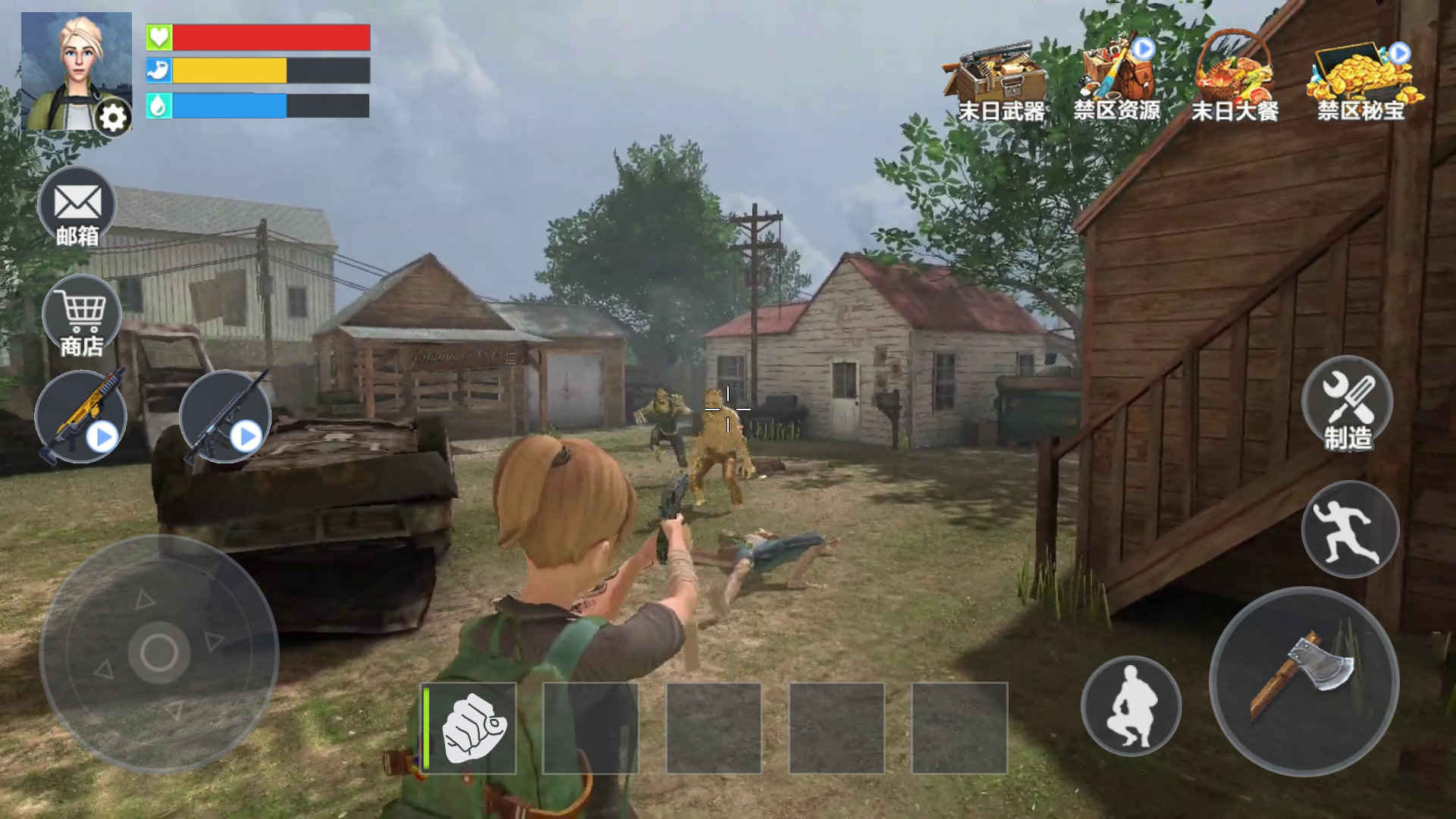 2、游戏是开放的世界,可以自由的进行探索,消灭更多的僵尸。