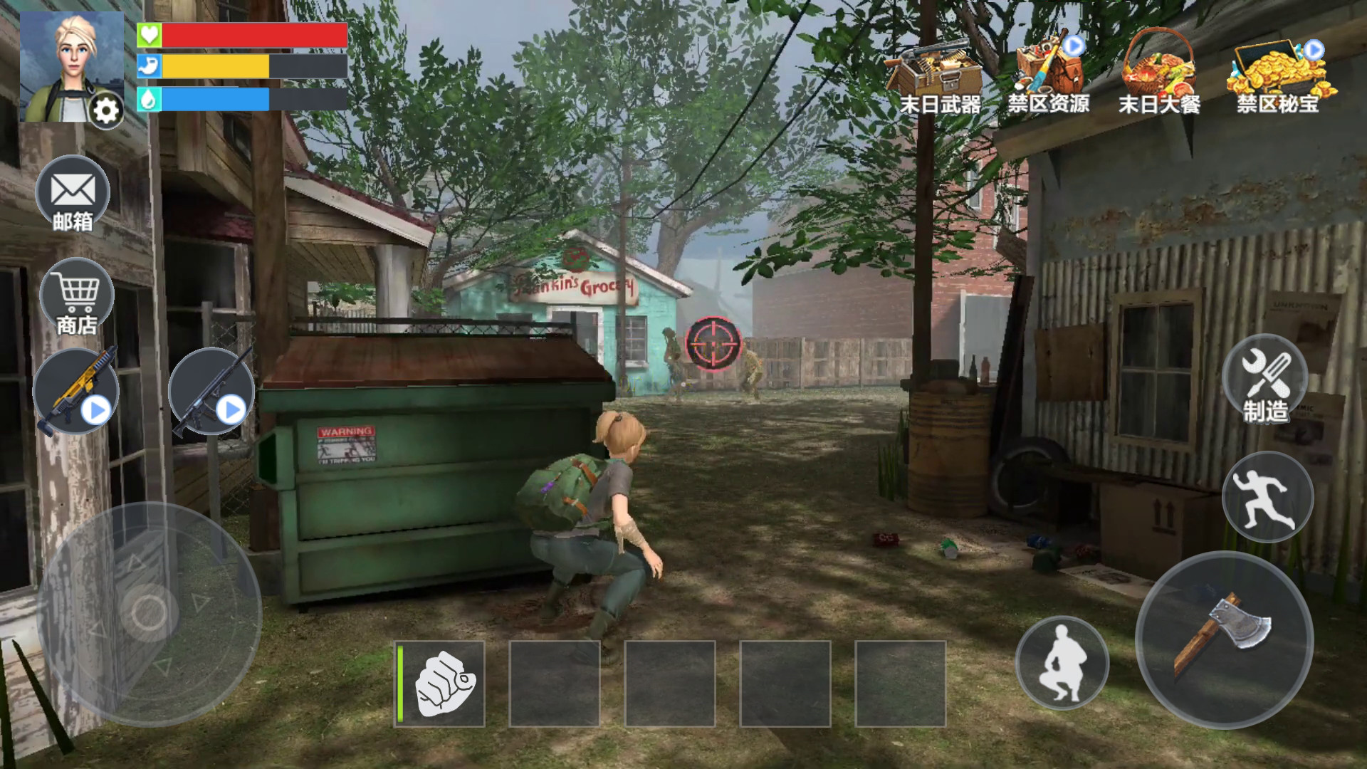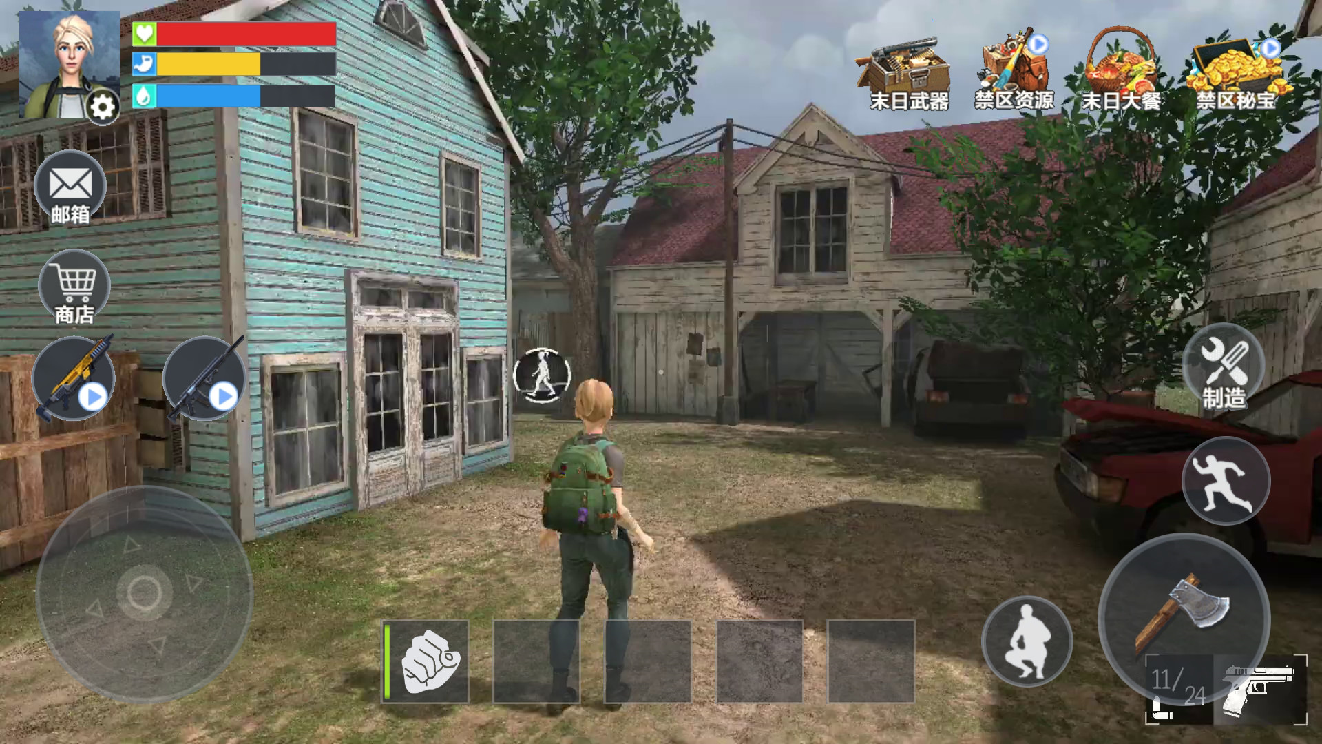 3、你要记住保护好你的物资,可以建造基地,也可以制作你的武器,招募更多的幸存者,保护人类文明。