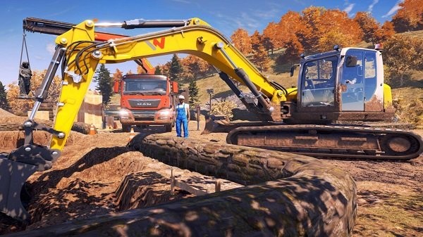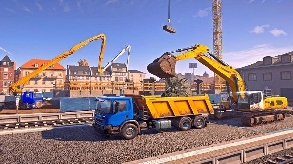 游戏中有很多施工车辆,会有不同的功能,玩家可以来体验一下。