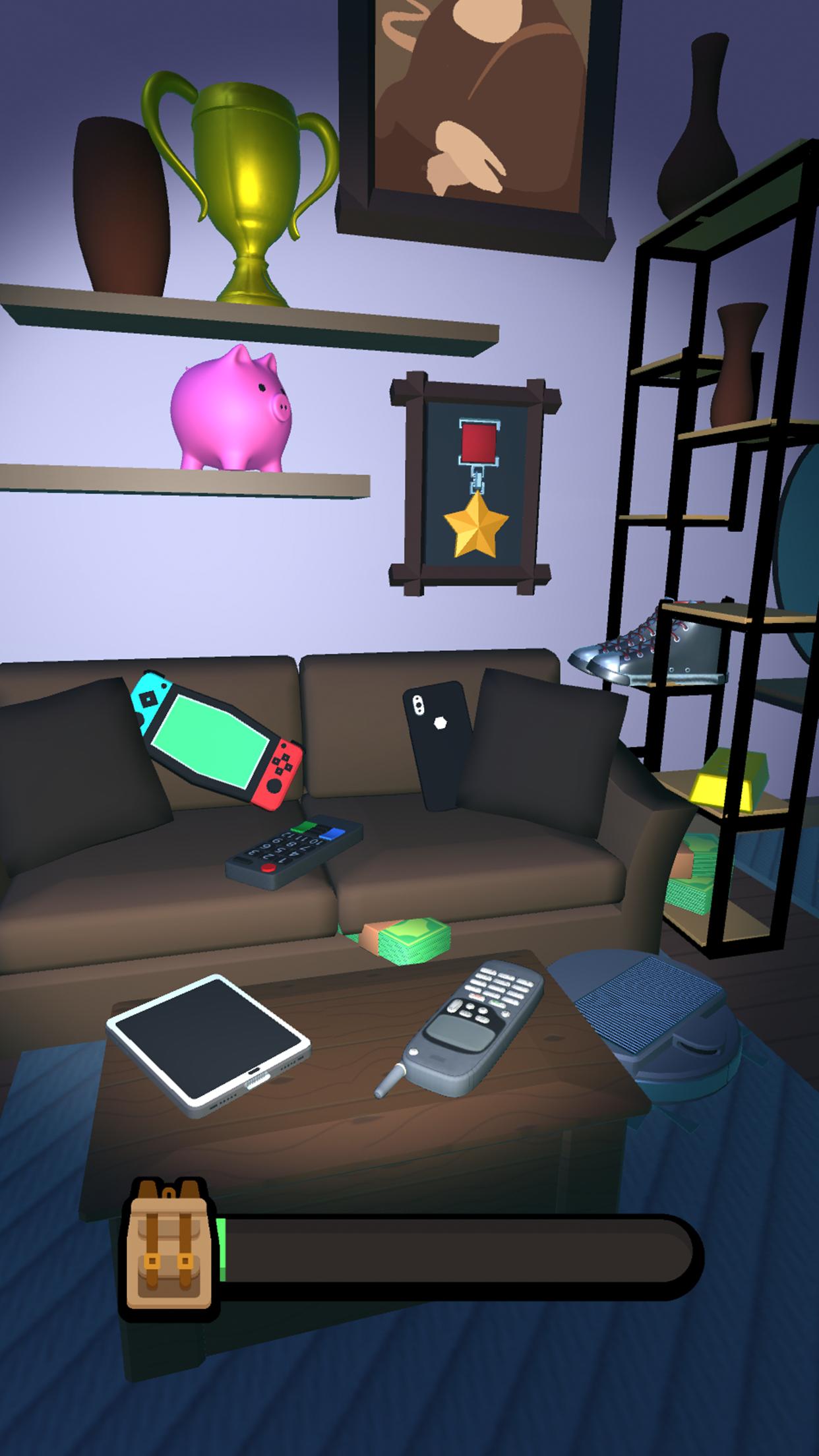 1、在房屋中自由搜索,所有的角落都要仔细查看,不能遗漏任何值钱物品,快速逃离现场。