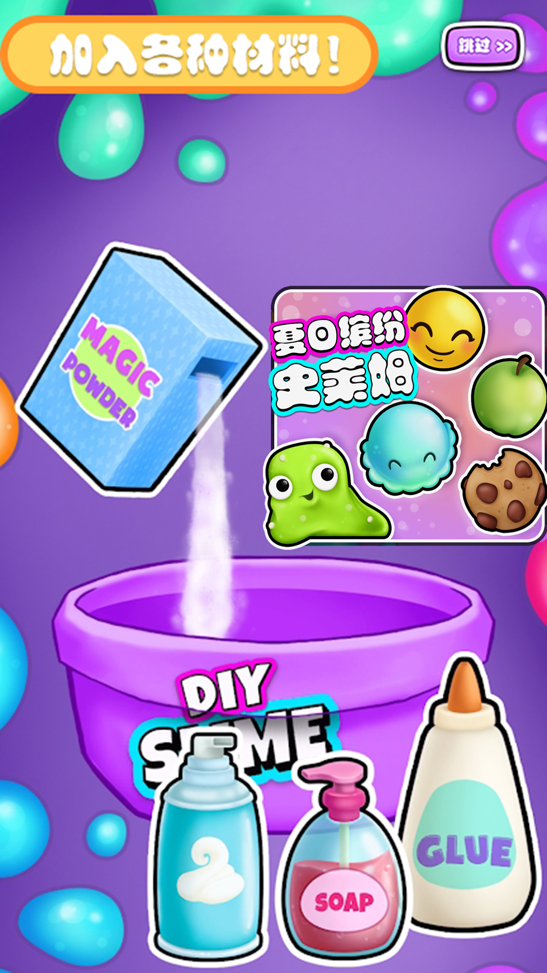 2、各种颜色的粘液制作,非常有趣的玩法,感受真实指尖效果;