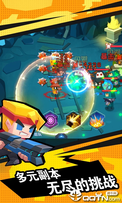 2、自由组建特色爆枪队伍,打造专属队伍开启地下城之旅。游戏采用卡通风格制作,