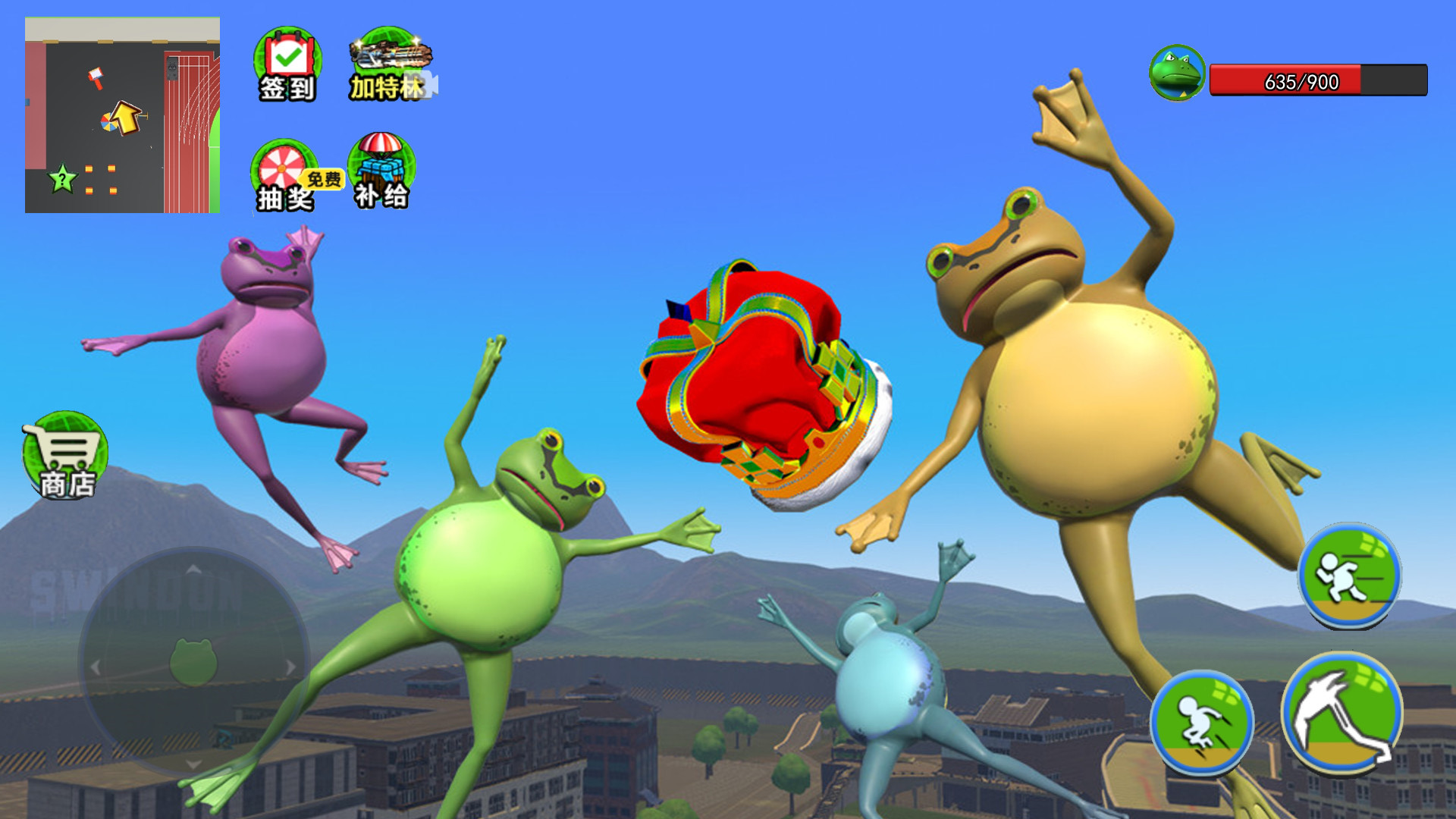 3、扮演青蛙在城市之中自由冒险,完成诸多的挑战,享受精彩的冒险旅程!