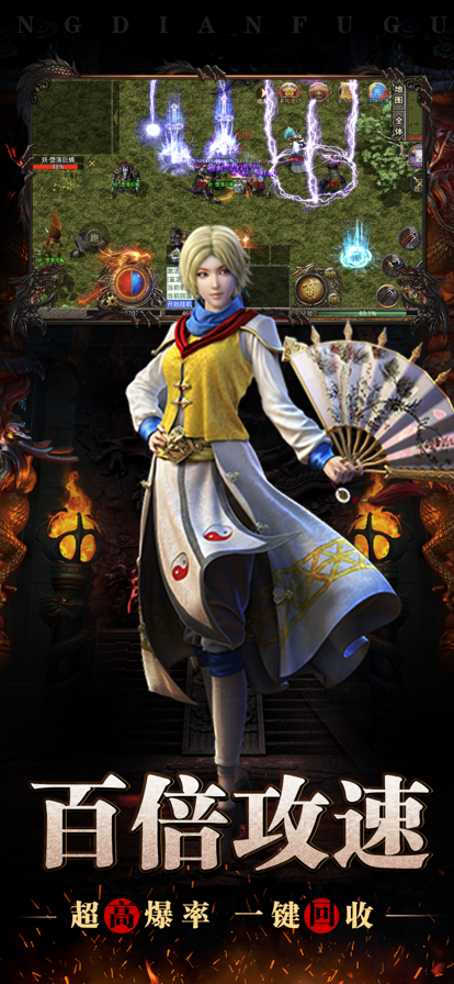 3、全新原始复古单职业,上线送顶赞,百倍爆率,刀刀切割,装备自由交易。