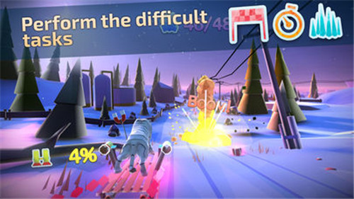 可以控制小动物驾驶各种新的交通工具在雪地中不断的前进,获得更高飞分数;