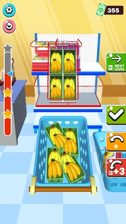 你所需要做的就是在货架上摆满不同的物品,如饮料、蛋糕、牛奶、玩具等,并把它们都放得尽可能整齐。