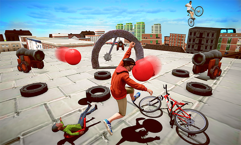 玩家需要控制一辆自行车,遇到炸弹之后真的有可能会被炸成碎片的,真正考验玩家们的操作;