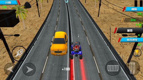 1、利用虚拟按键来驾驭摩托车,让摩托车保持平稳而高速的前进。