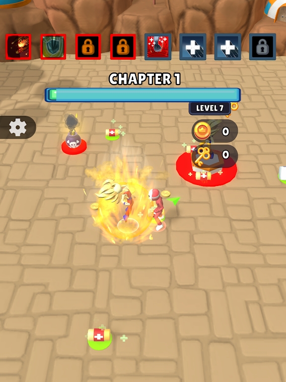 1、卡通风格的动作冒险游戏,随机的选择不同的英雄角色,尽情挑战;