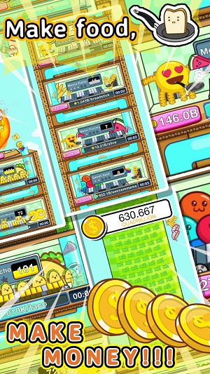 3、通过离线就可以生产更多的硬币,要用赚来的钱不断的升级自己的楼层,也要烹饪出来更多的食物。