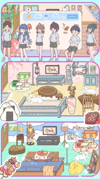 2、此外,许多角色正等着去攻略,结识各种伙伴,一起打扮自己的家。