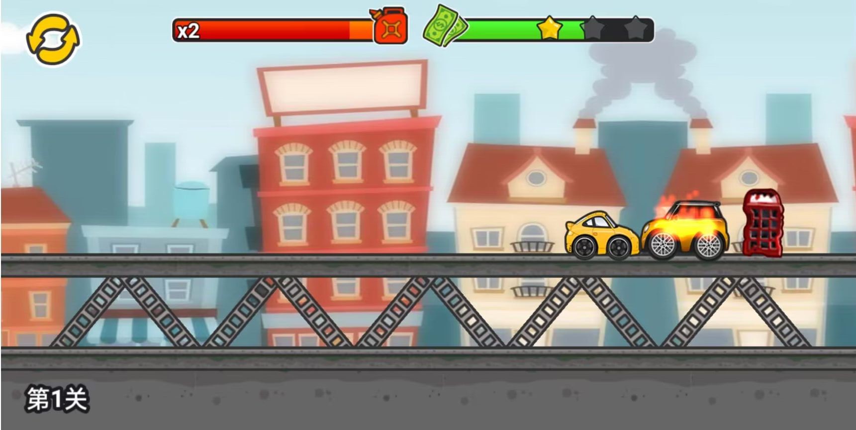 3、各种道具都能自由使用,尽情体验欢乐的汽车大战,还有很多好玩的关卡等你来挑战。