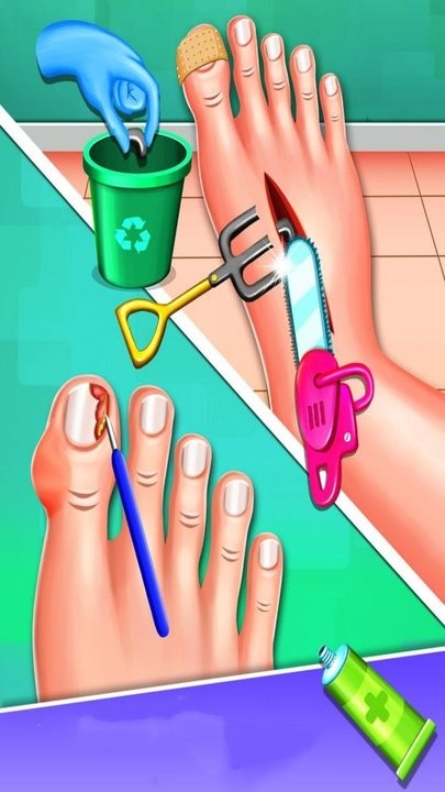 1、在这个修脚大师解压模拟器游戏中扮演一个疯狂的外科医生来治疗受伤的病人