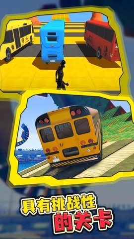 巴士特技模拟器是一款模拟驾驶赛车竞速小游戏,驾驶自己的巴士不断完成各种惊险的挑战利用丰富的道具制霸全场,真实模拟的驾驶体感非常刺激感兴趣的朋友快乐下载体验吧。
