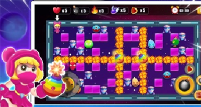 1、在迷宫中放置不同的炸弹,点击炸弹进行爆破,在炸弹范围内有其他的特殊炸弹或者道具会引发不同的效果。