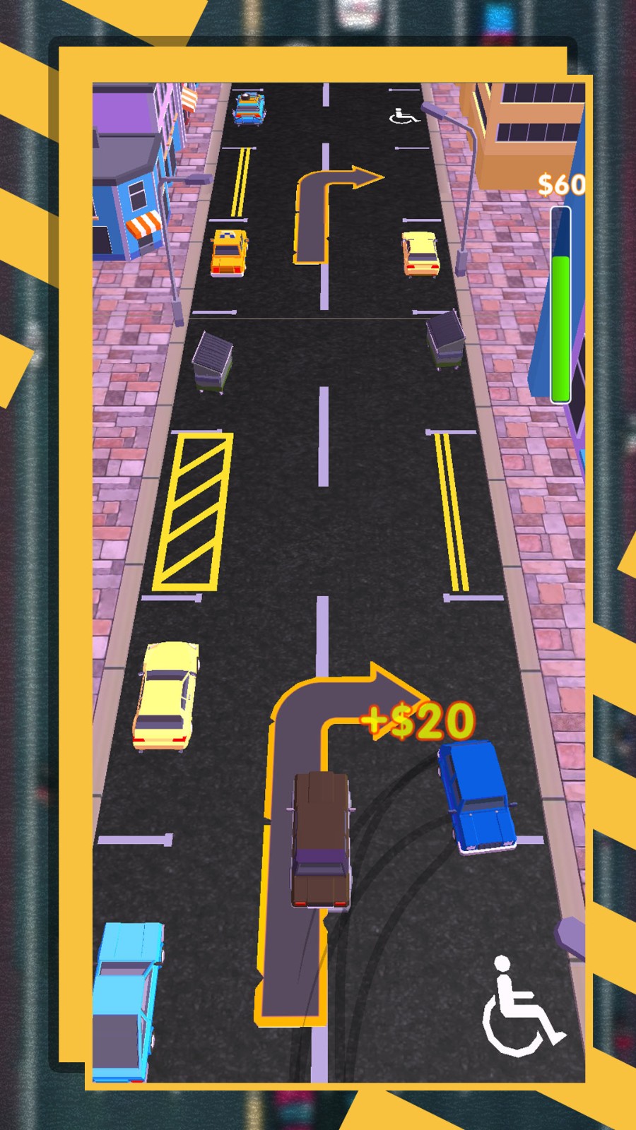 这是一款非常轻松的模拟驾驶游戏,根据玩家使用的车种不同,它们各自的速度、车身长度,以及遇到的车位空间大小也都不一样,所以一定要好好做出选择呢。在两边马路车与车的空挡中漂移停车,让自己的小车往对应方向甩尾,停车入位,也非常的帅气!
