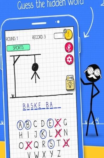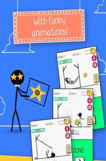 3、支持双人游戏,拿起笔画出火柴人的死法,让朋友猜谜填空。