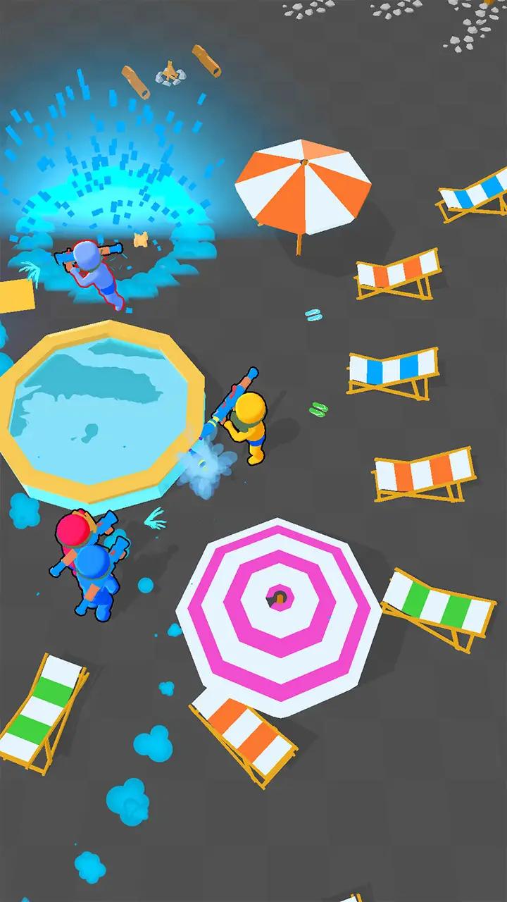 3、体验夏天的刺激游戏,泳池派对中扮演枪手去射击对方,跟大家一起玩水。