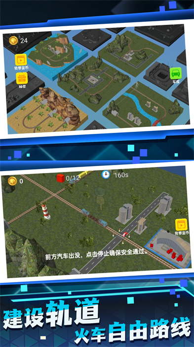 2、玩家将面对不同的地形和关卡跳转,在规定的时间内铺设合适的轨道。