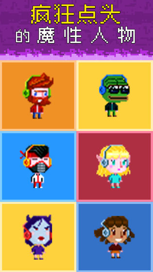 3、还有各种各样的像素小人角色等你收集,每个小人都会跟着音乐节奏魔性的点头。