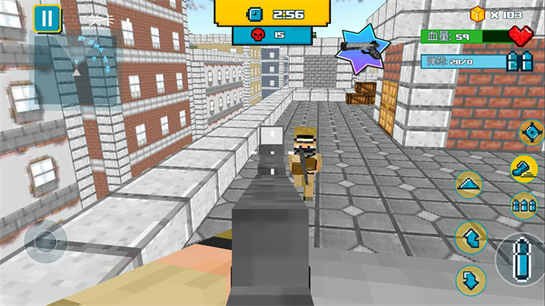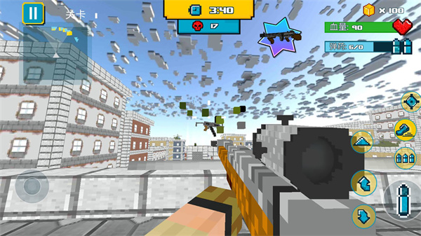 3、探索方块世界挑战更多敌人,你要使用各种武器快速射击,成为最后的胜利者。