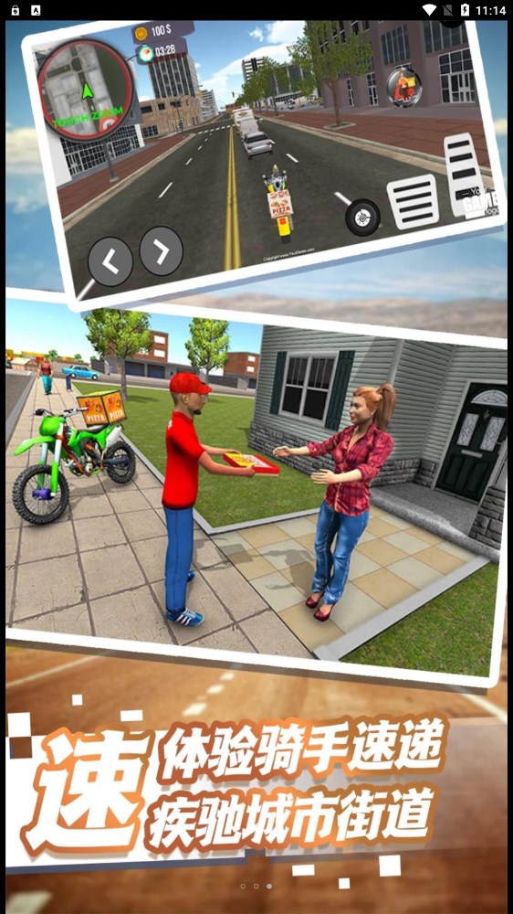 1、欢乐无比的驾驶模拟游戏,扮演外卖小哥,迅速送餐;