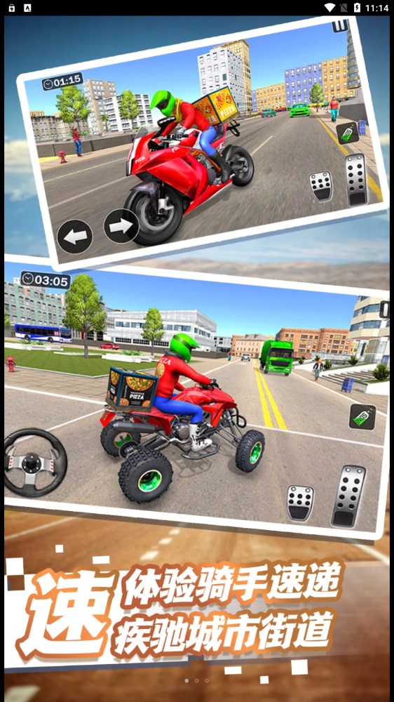 3、刺激无比的游戏玩法,应对各种路障和危险,安全送达外卖。