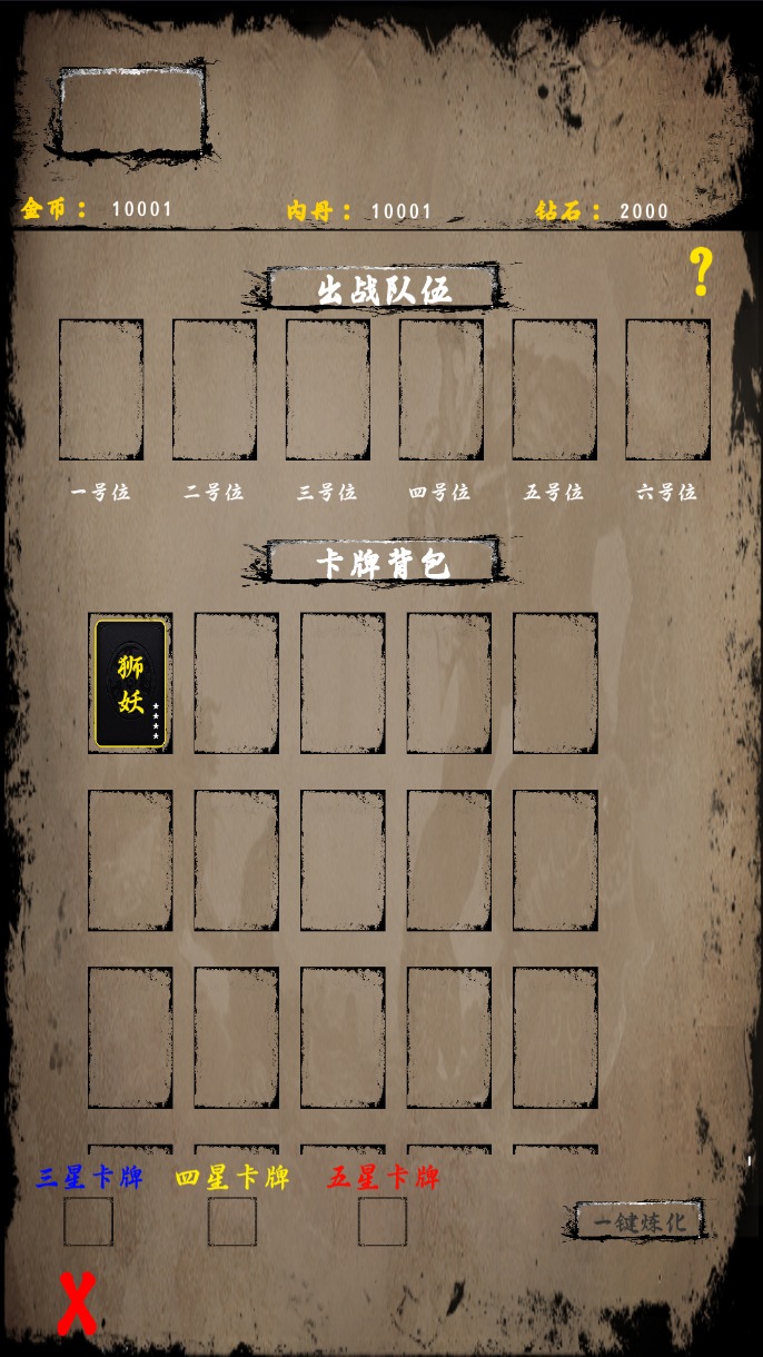 3.你所有的卡牌都放置在背包中,其中可以按照不同的星级,来进行分类的。