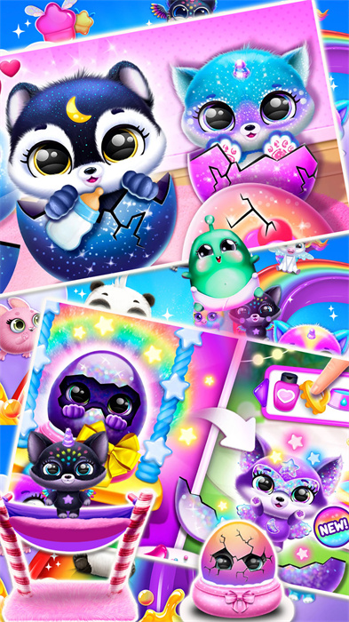 2、孵化可爱宠物,探索并观看精彩故事,以解锁新房间、家具、炫酷礼物,以及有趣的游戏特典!