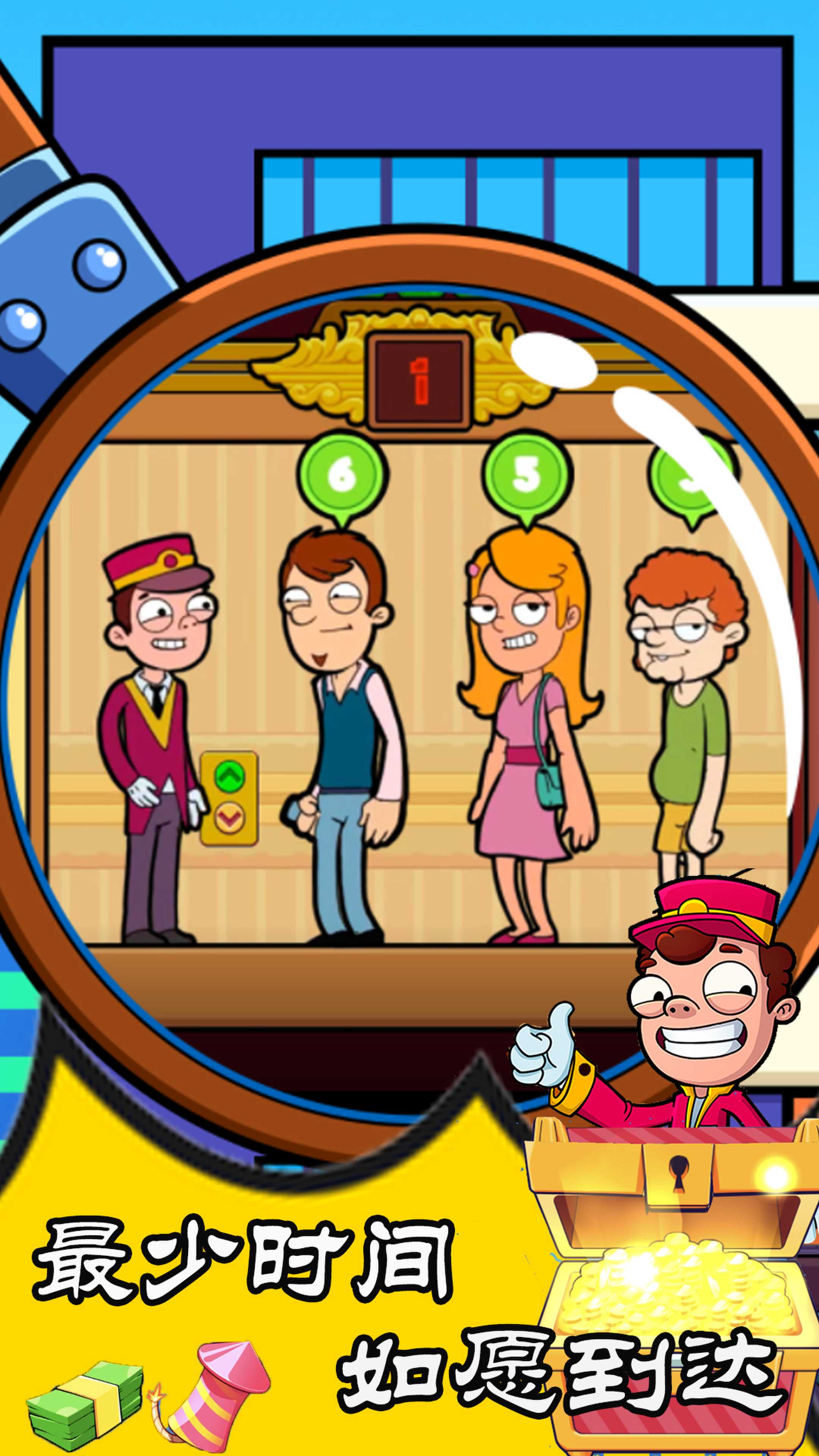1、以繁华的酒店作为主要场景,设计了各式各样的有趣的关卡。