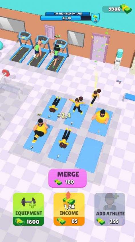 2、游戏非常容易使用,只要点击,就可以完成不同的操作,快来下载健身大师闲置健身房。