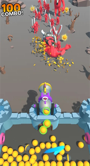 1、使用大炮将所有敌人都炸飞,在各种场景中疯狂射击,快速击杀各个区域中的敌人。