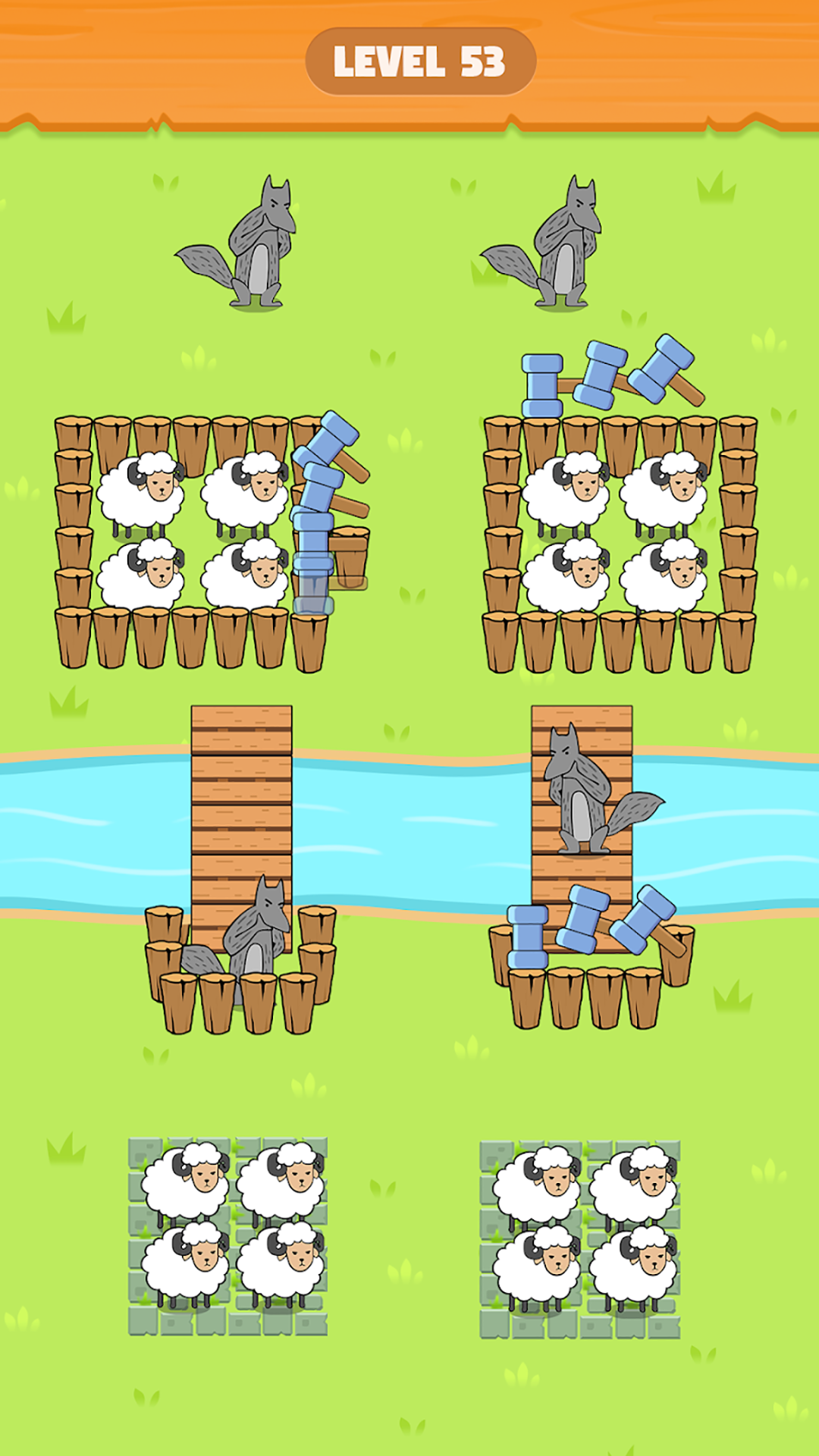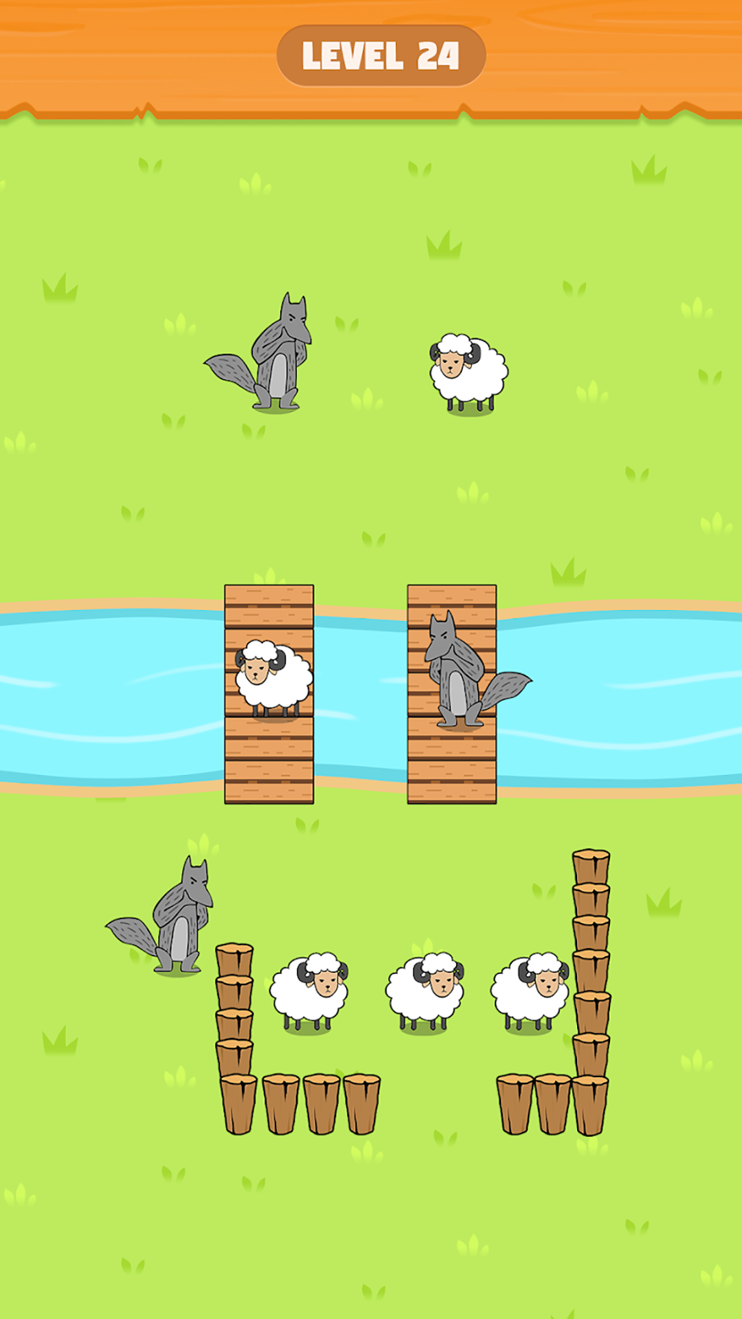 1.游戏的关卡内容非常有意思,为小羊们设定木头桩子,把狼阻隔在外吧!