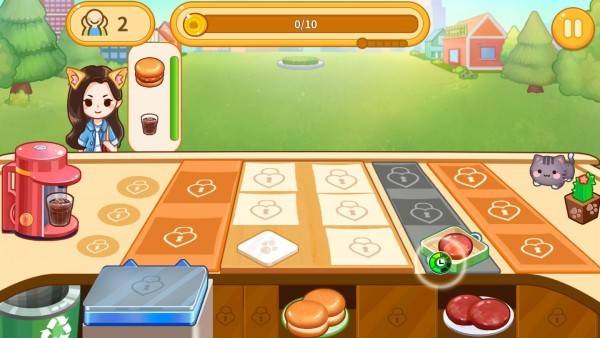 3、游戏操作很自由,玩家可以解锁各种美食,还可以购买葛总道具,让我们的餐厅规模越来越大。
