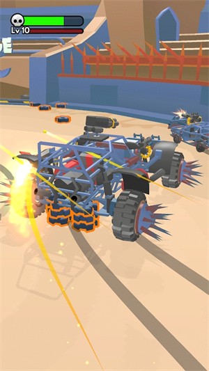 超级刺激的怪物赛车对战体验,你可以为你的赛车配备不同的武器,机枪、激光导弹等等应有尽有,不过都是需要闯关来解锁的哦。