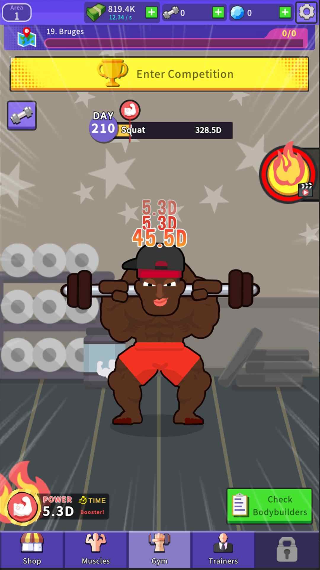 2、游戏非常容易使用,只要点击,就可以完成不同的操作,快来下载健身大师闲置健身房。
